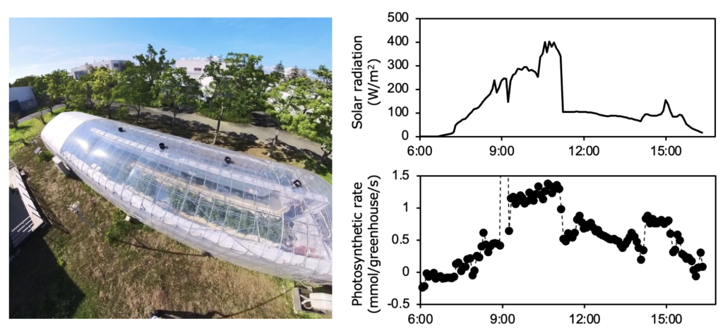 気流を完全に制御することが可能なセミクローズドパイプハウスにおける温室レベルの植物生体情報と環境制御を組み合わせることで、温室内の気象管理や栽培管理の高度化を目指した研究を行っています。
